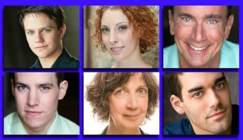 The cast features Scott Patrick Sawa (Bob Neal), Joseph Anderson (Edgar Hellum), PFP Ensemble Member Tom Chiola (William Gundry), Jean Marie Koon (Marjorie King), Mindy Barber (Betty Cass), and Nathan Elder (Understudy).